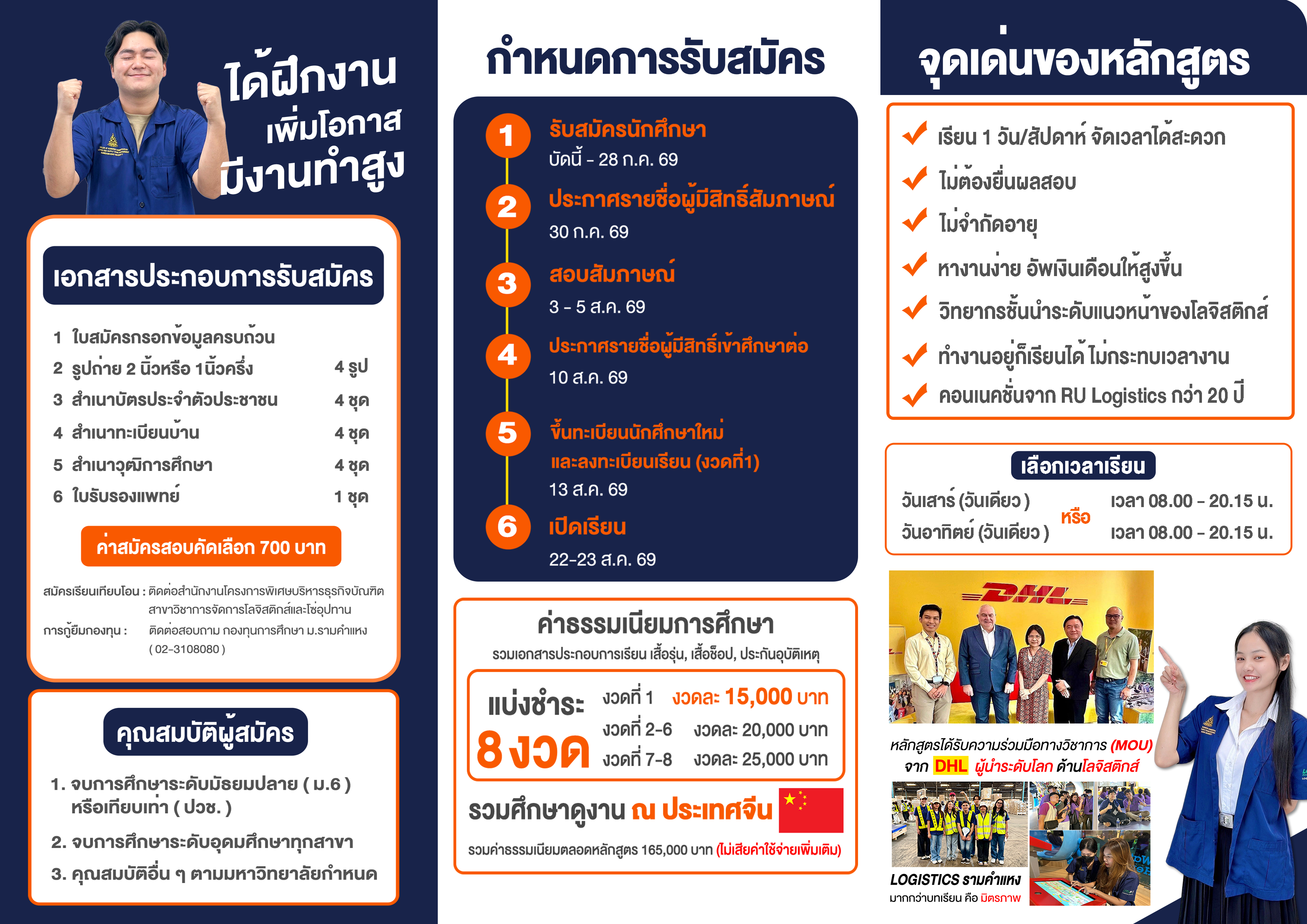 ระบบกรอกใบสมัคร ออนไลน์ โครงการพิเศษบริหารธุรกิจบัณฑิต สาขาวิชาการจัดการโลจิสติกส์และโซ่อุปทาน ระดับปริญญาตรี